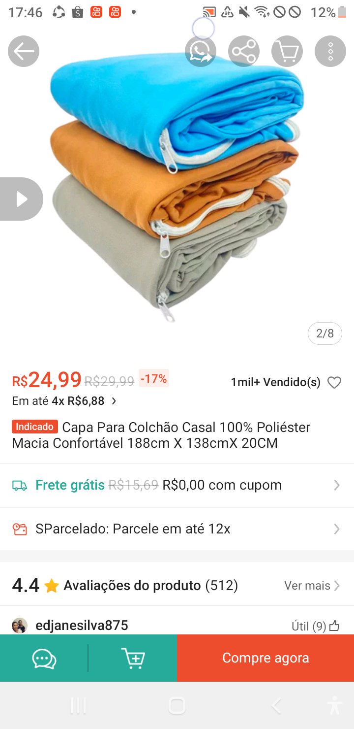 sou vendedora shopee iniciante interessa em comprar capa de colchão ótima promoção formas de pagamento cartão de Crédito ou Boleto Algum pedido Shopee mande eu quero ou entre contanto agradeço 💵